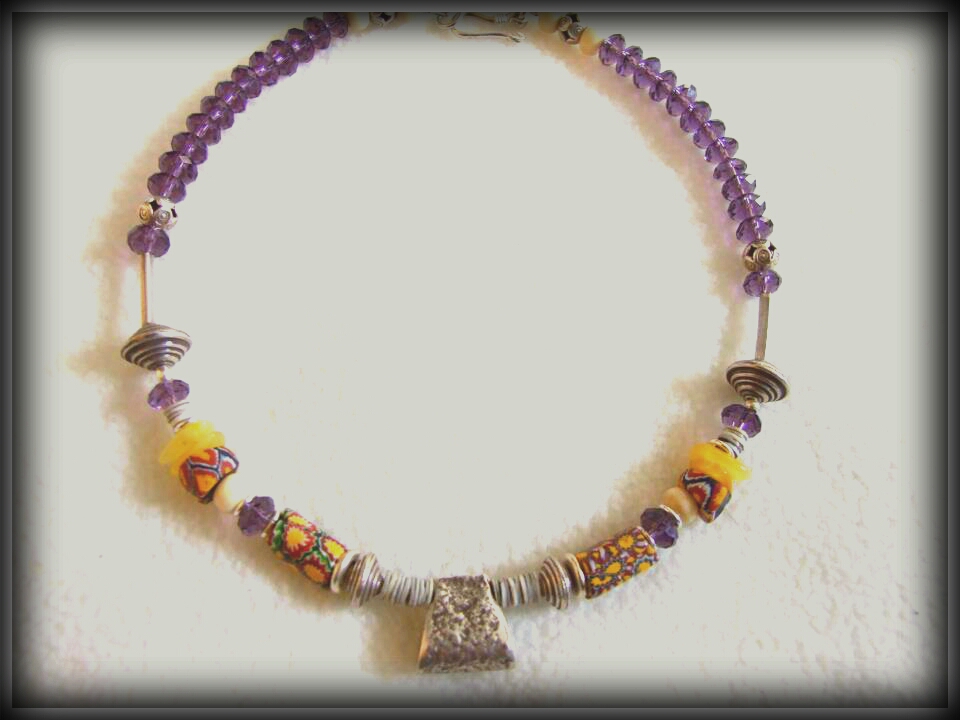 lovely cut amethyst amber and vintage glass necklace