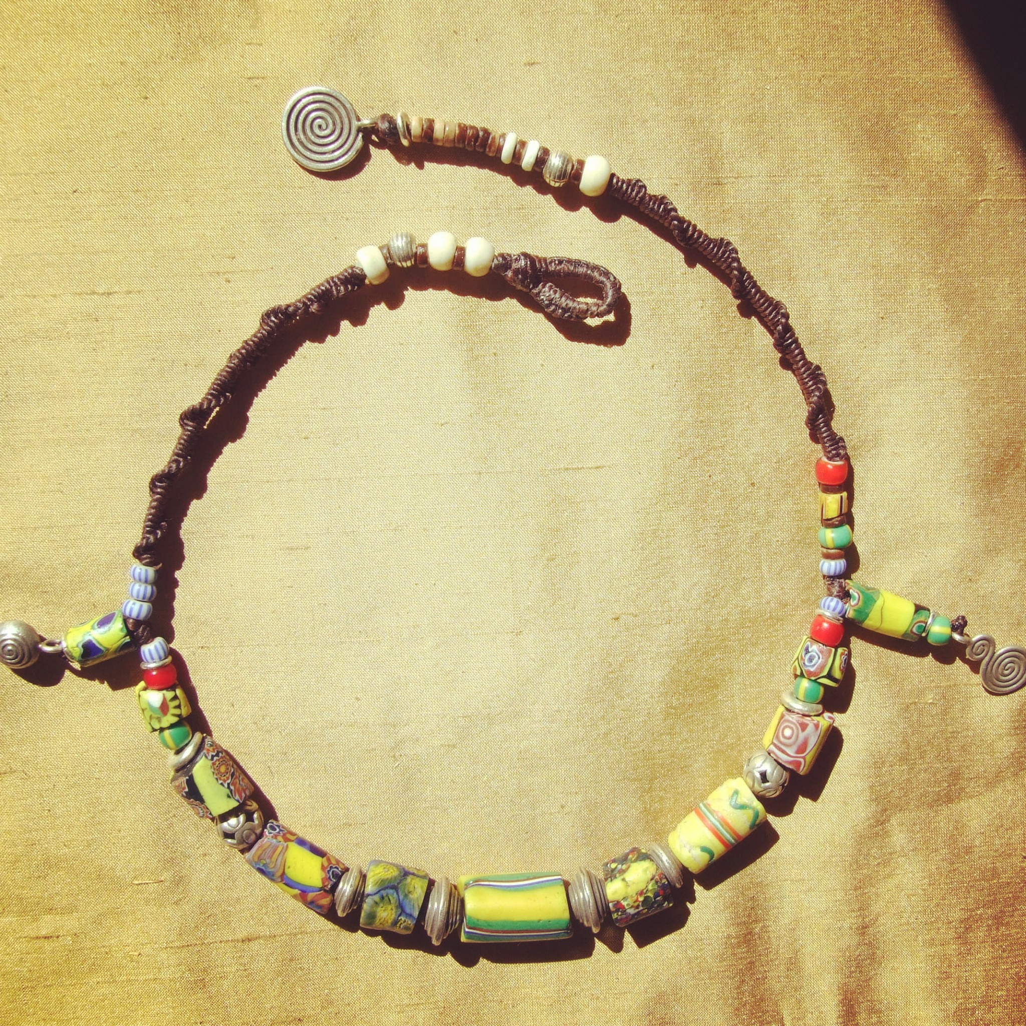 Glass Trade Beads And Handmade Tribal Silver On A Rope Of Brown Cord It Calls Freedom..